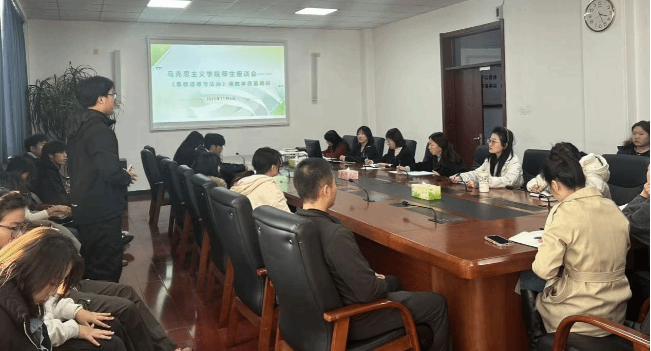 11月6日,马克思主义学院在办公楼317会议室召开师生座谈会,针对《思想道德与法治》课进行教学质量调研。教学督导委员杨旭、学院领导班子成员、思想道德与法治教研室教师及大一年级学生代表参会,会议由副院长王帅乔主持。