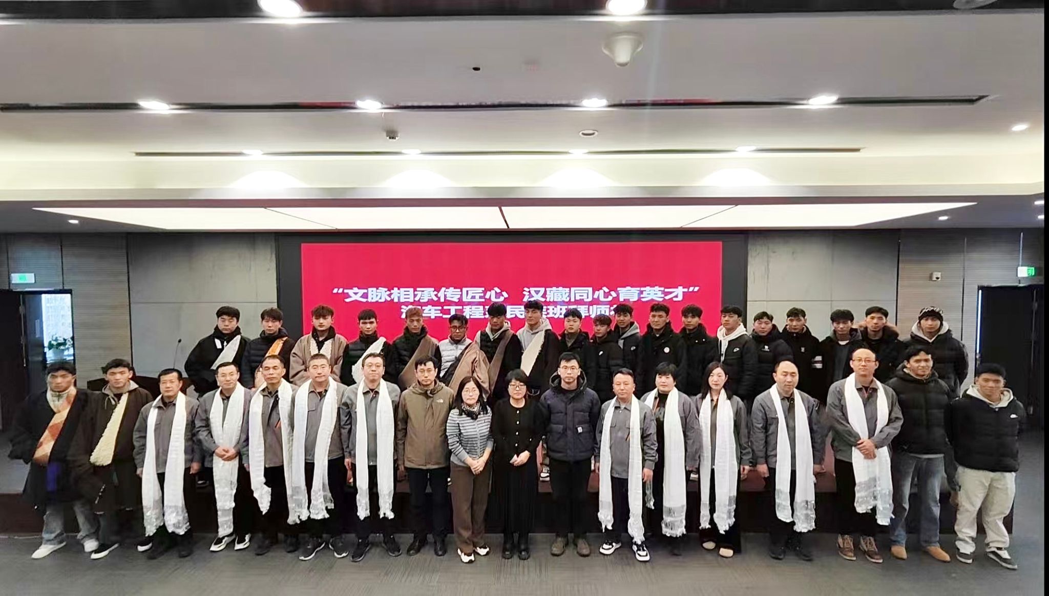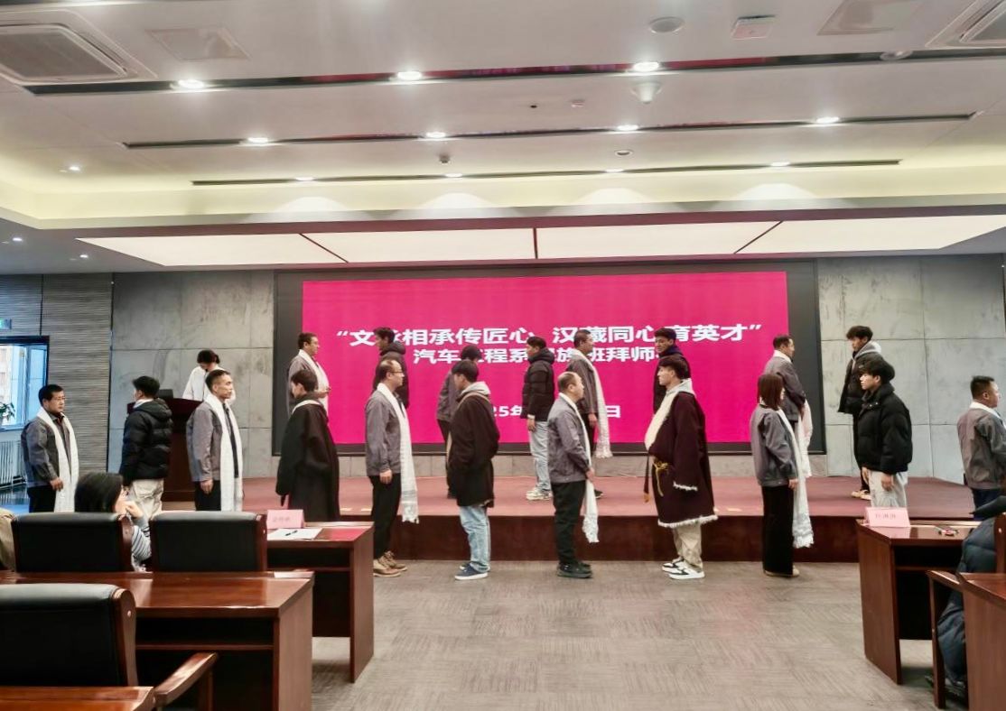为深入贯彻落实党的二十届四中全会提出关于“铸牢中华民族共同体意识,推进中华民族共同体建设”的战略部署,大力弘扬中华优秀传统文化中源远流长的师道传统,深化民族团结教育,推动职业技能与工匠精神的代际传承,12月16日下午,汽车工程系隆重举行“文脉相承传匠心 汉藏同心育英才”民族班拜师礼仪式。系领导班子成员、结对教师、辅导员及23名民族班学生参加了此次活动。