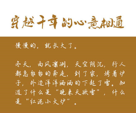 不仅如此,小时候诗词背多了,长大后每一次旅行,都像故地重游。从古至今,虽然人的生活节奏变得越来越快,但是对理想的追求,对家乡的思念,对美好的期盼始终如一,我们和古人的精神链接并没有断裂,触景生情时刻,诗词就是我们的使者。