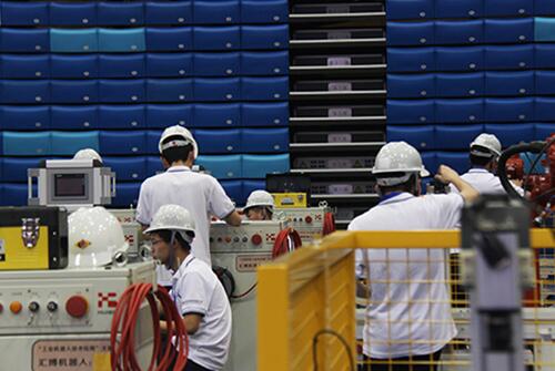 5月10日下午,2016全国职业院校技能大赛工业机器人技术应用赛项进行了最后一组的比赛。“我们的比赛从5月8日下午就开始了。”现场裁判为记者介绍,“今年一共来了44支队伍,每队3名选手,分了5个组进行比赛。”44支参赛队,这比去年比赛首次举办时多了8支,可见工业机器人技术应用在高职院校中得到了普及与发展。