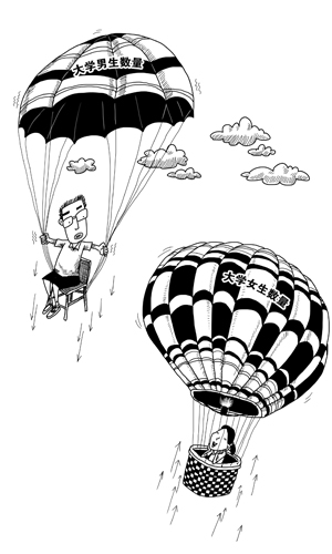 最让高校头疼的是女大学生的就业问题。在女大学生越来越多的情况下,就业时却出现倒挂——女生不如男生好找工作,同等条件下,用人单位更倾向于要男生。近年里,大学生就业领域的性别歧视越来越严重。“由于工作需要经常出差,加上女生几年后面临生孩子的问题,这使得用人单位更愿意选择男生。”这位招办主任表示。