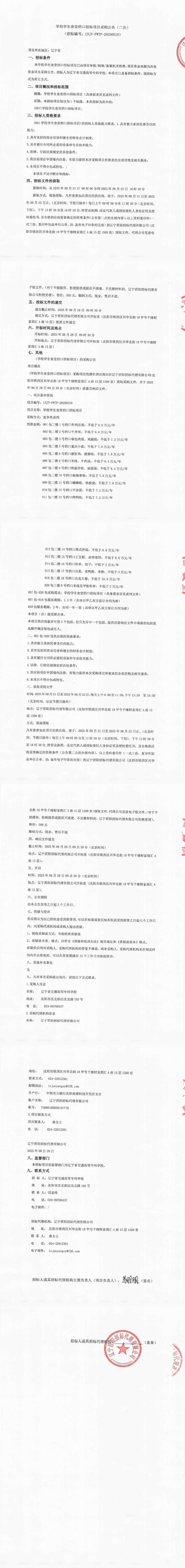 学校学生食堂档口招标项目采购公告(二次)