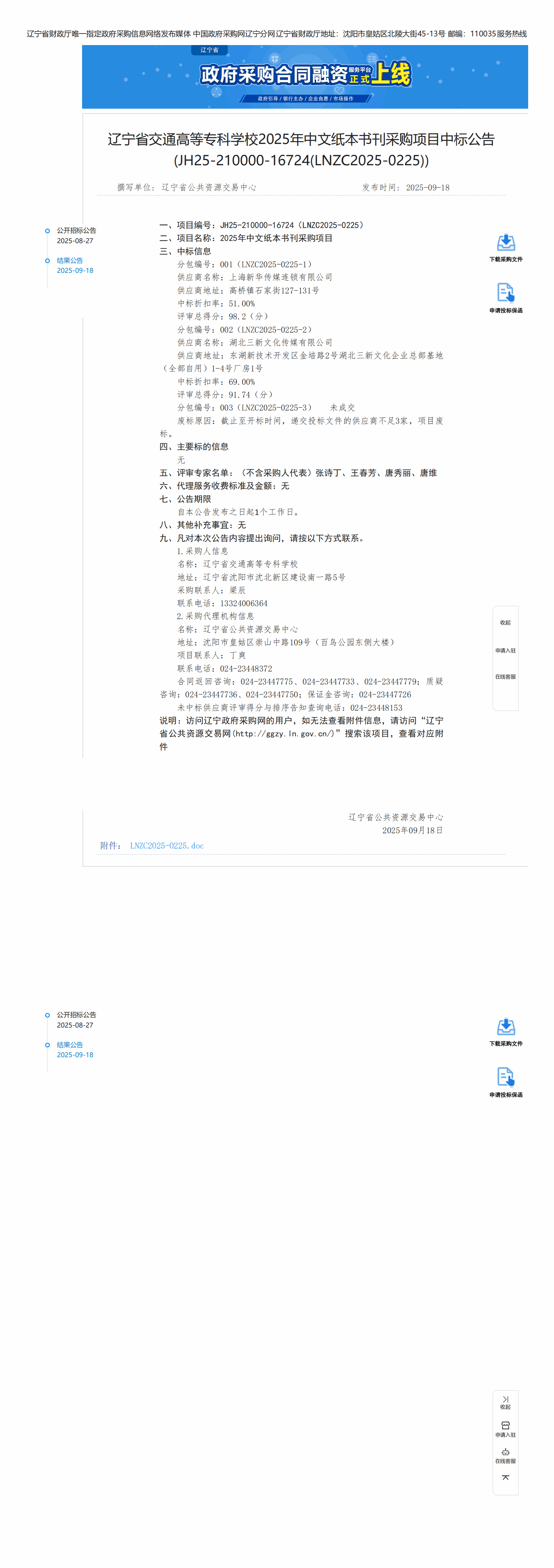 m体育(中国)有限公司官网2025年中文纸本书刊采购项目中标公告(JH25-210000-16724(LNZC2025-0225))