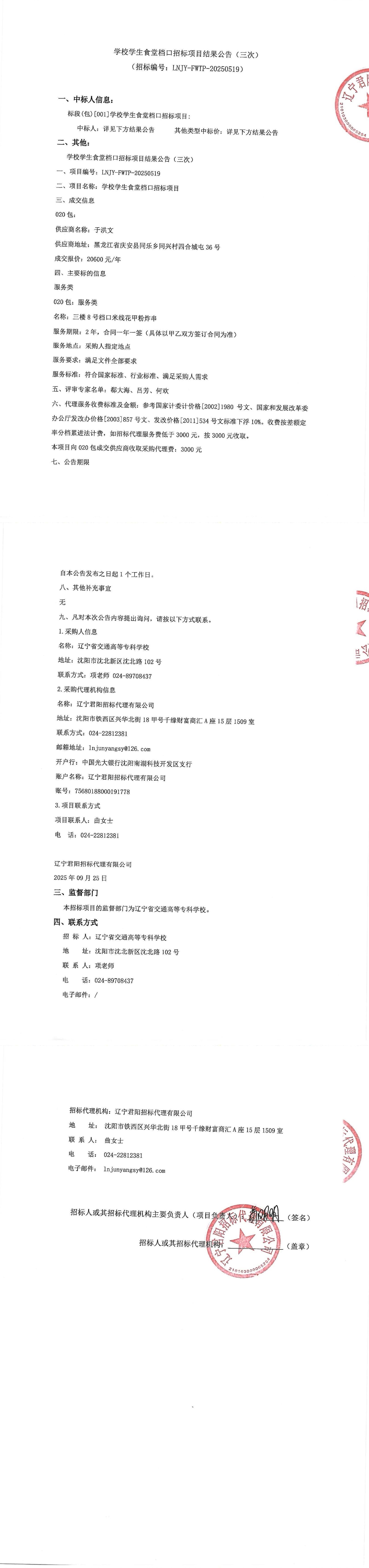知行楼固定桌椅采购项目成交结果变更公示(LNCC2025184)