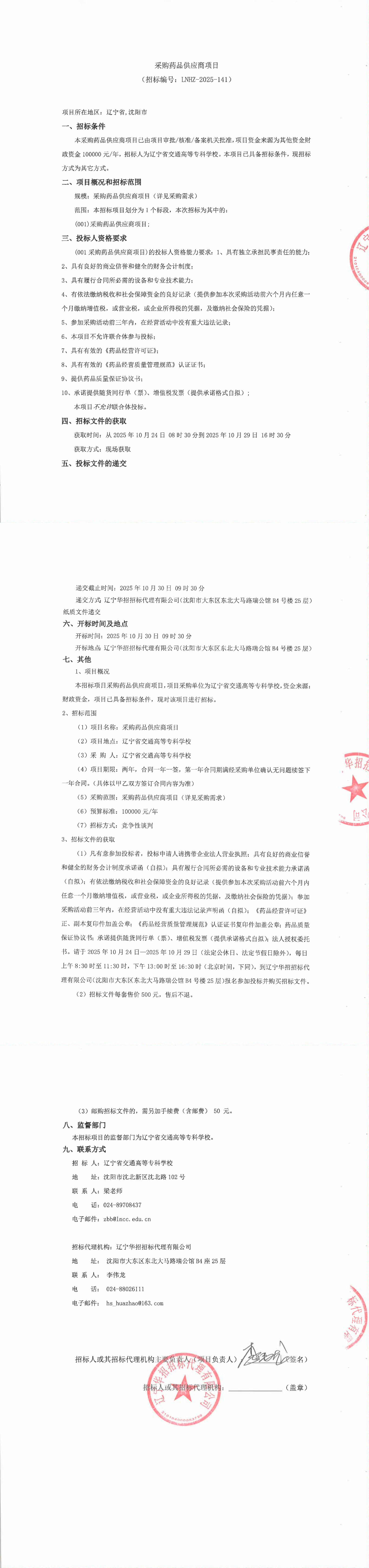 采购药品供应商项目m体育(中国)有限公司官网(LNCC2025143)