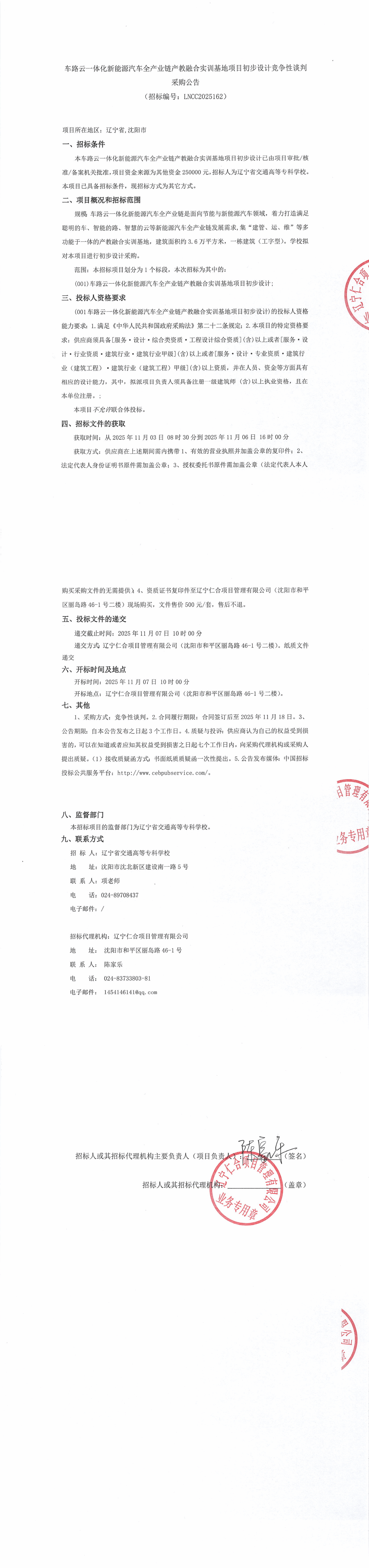 车路云一体化新能源汽车全产业链产教融合实训基地项目初步设计竞争性谈判采购公告