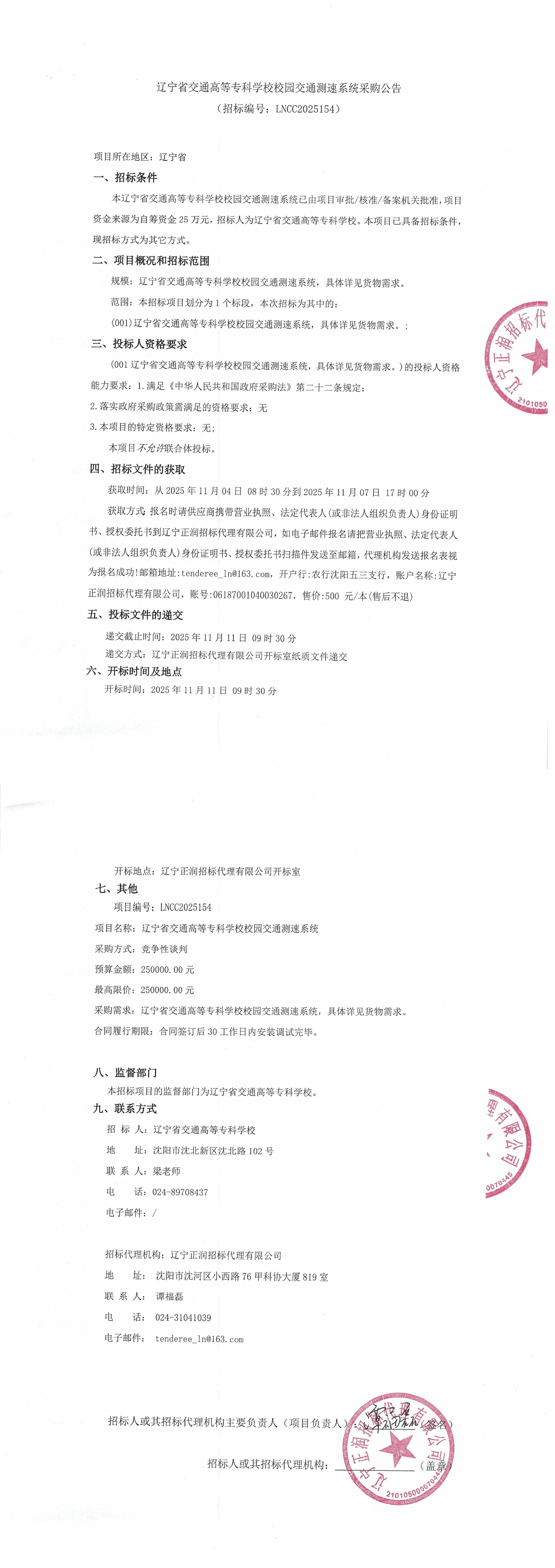 校园交通测速系统采购公告(LNCC2025154)
