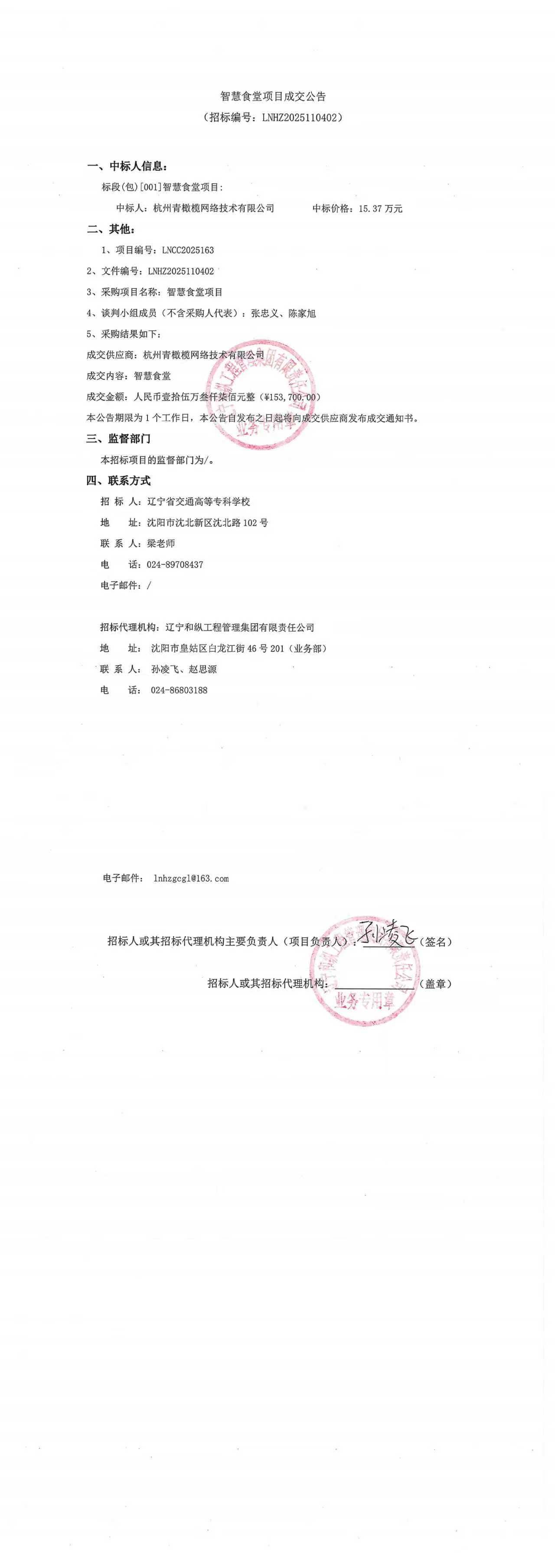 智慧食堂项目结果公告(LNCC2025163)