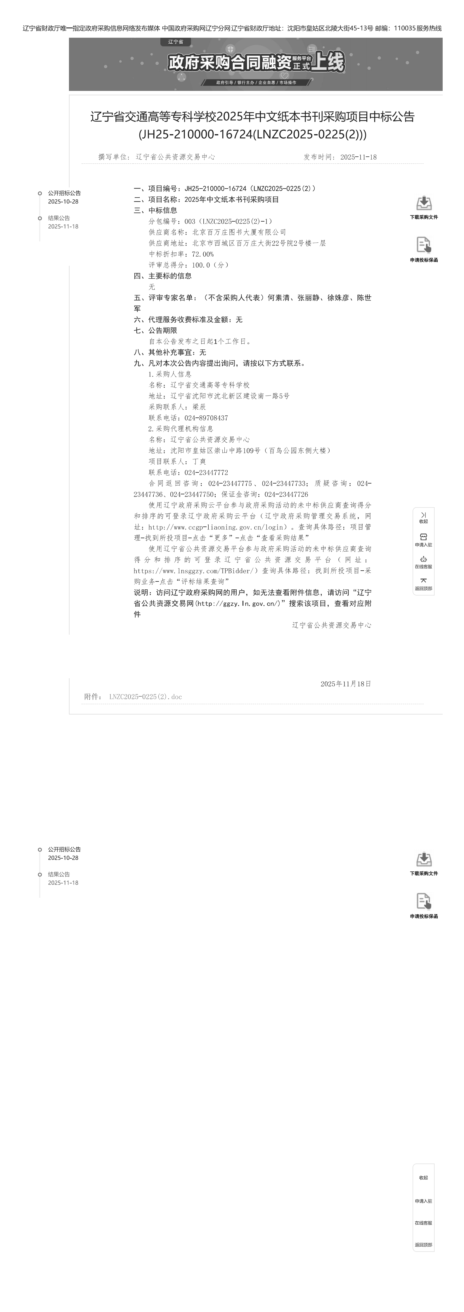 m体育(中国)有限公司官网2025年中文纸本书刊采购项目中标公告(LNCC2025072)