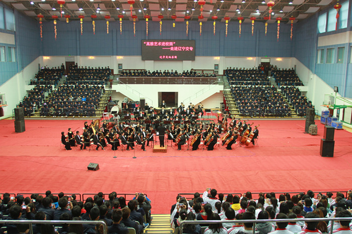 由国家教育部、文化部、财政部联合主办的高雅艺术进校园活动——“青春与艺术同行”交响音乐会于10月23日在我校体育馆拉开帷幕。本次交响音乐会邀请到了全国享誉盛名的辽宁交响乐团,我校2200余名师生一同欣赏了这场高水准、高品位的视听盛宴。