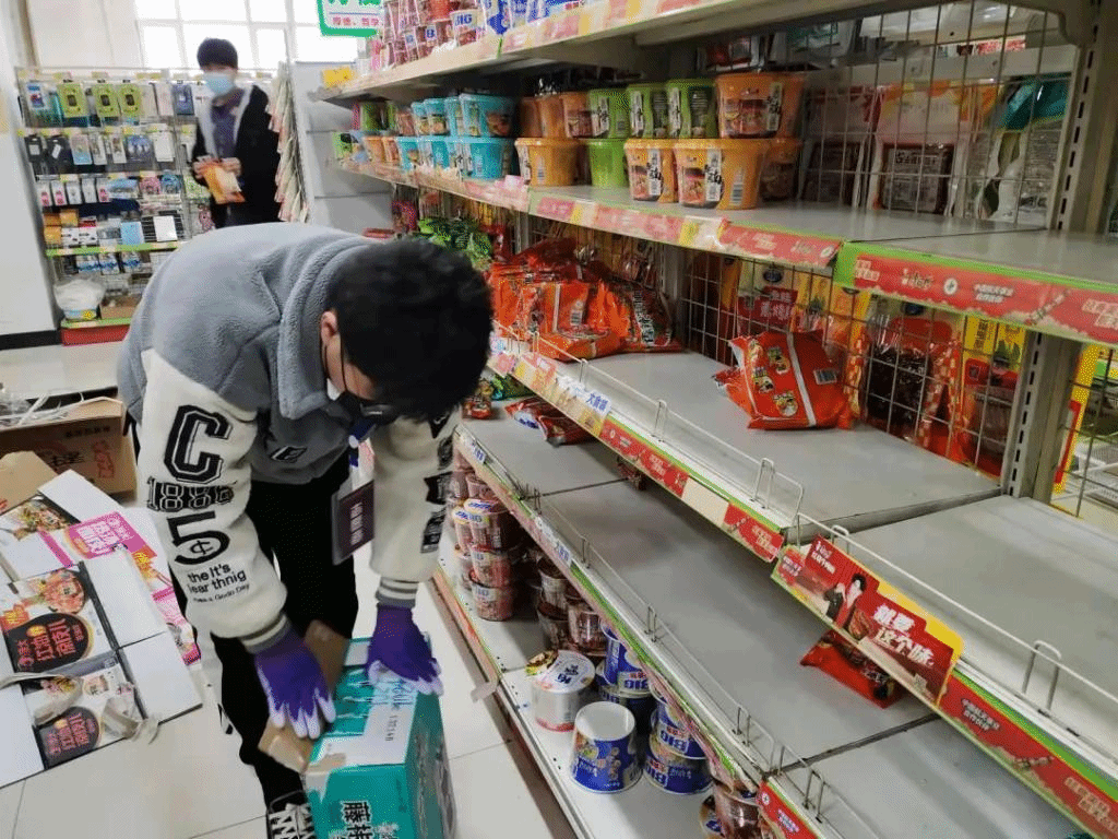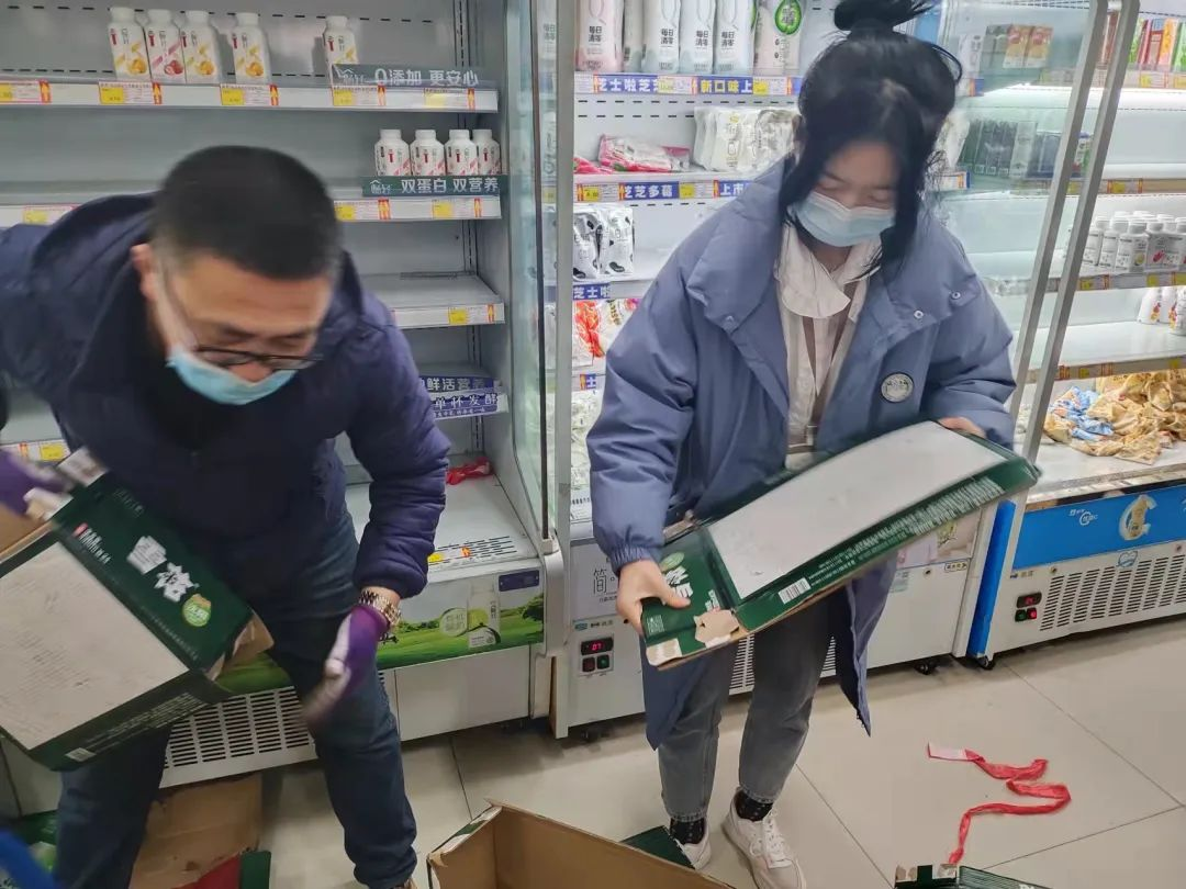 (志愿者帮助超市整理货架)