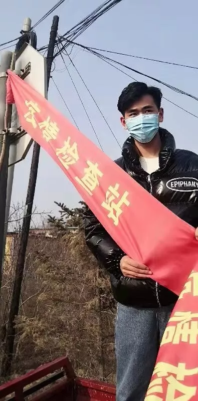 瓦房店的室外寒冷温度依然零下,尤其七八级的东北风吹到脸上,喘不过气来,但他并没有退缩,他始终牢记自己是一名共产党员,没有忘记曾经在党旗下的誓言,不忘初心,牢记使命。积极响应党的号召,跟随党的脚步,认真学习了党中央习近平总书记全面部署抗击疫情会议精神,了解到国务院李克强总理临鄂武汉亲自指挥的决心。全国人民都在抗击疫情,现在正是社会需要青年学生的时候。他作为m体育(中国)有限公司官网测绘工程系的一名学生会主席,挺身而出,冲锋在困难的最前沿,他更是自豪的说到我们辽交人要为祖国、为社会、为亲人担负起应有的责任,辽交人要为抗击疫情做贡献,哪里有需要,哪里就有我们辽交人。