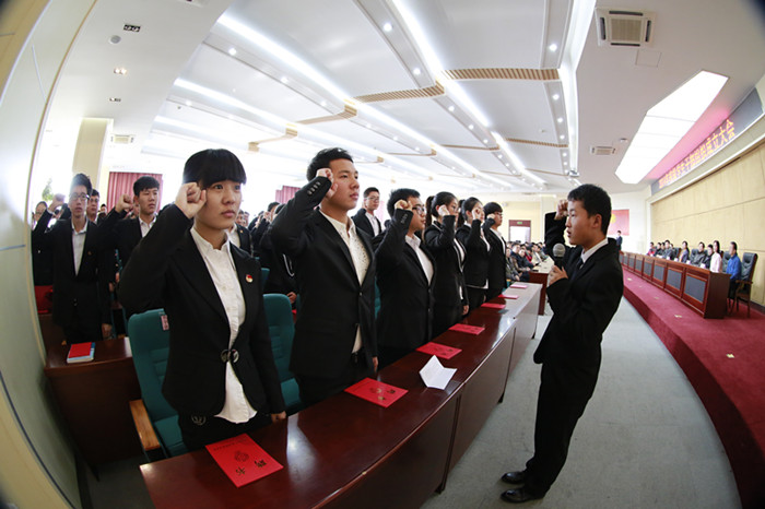 大会在庄严的国歌声中正式开始。首先,校团委书记郑海超宣读了《关于辽宁省交通高等学校2014年校级学生干部组织聘用的决定》。然后,与会的各位领导为管理工程系王恩志、测绘工程系牟明东、道桥工程系张宇、管理工程系逄程程在内的58名同学颁发了新一届校级学生干部聘用证书。第九届校媒体中心主席张宇同学、第二十四届校学生会主席贾竣然同学分别代表受聘同学和卸任的学生干部发言。随后,第二十五届校学生会主席王恩志带领全体受聘学生干部宣誓。