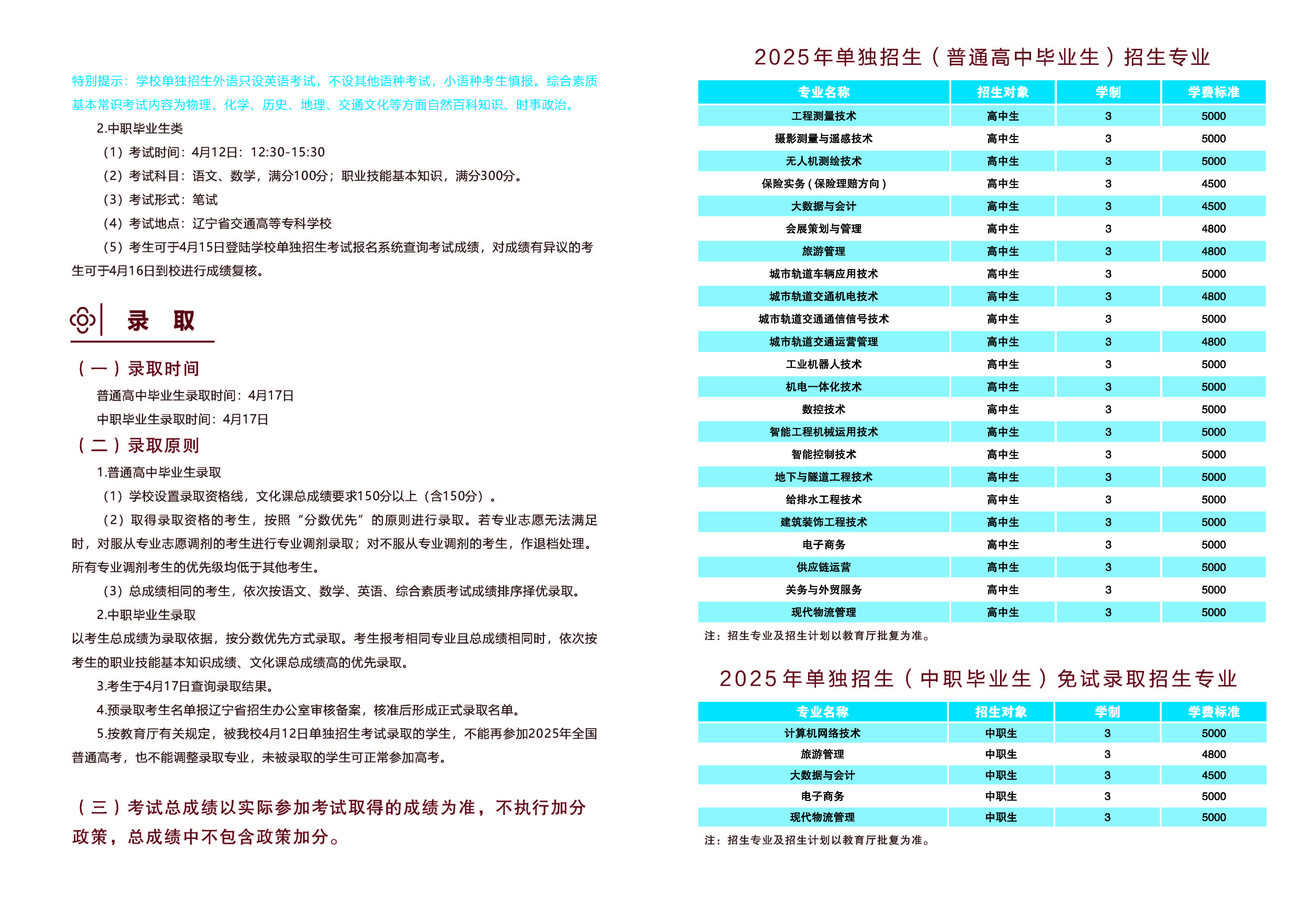 【2025】2025年单独招生简章
