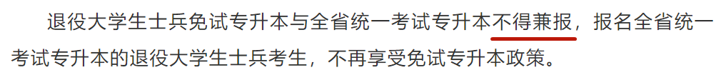 这个也要看各地具体的政策,有的地方不得兼报,比如山东省退役军人事务厅2022年1月5日对当地免试专升本政策的解读中有提到(如下图)。
