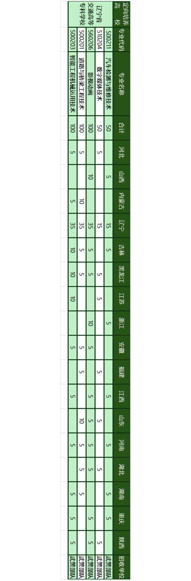 本专业面向武警部队、培养具有道路与桥梁工程勘测、施工、维护抢通、军事等知识和技能,能从事公路、桥梁和隧道工程测量、施工、检测及快速抢通等岗位工作,具备较高的专业技术能力和军事素养的复合型人才。