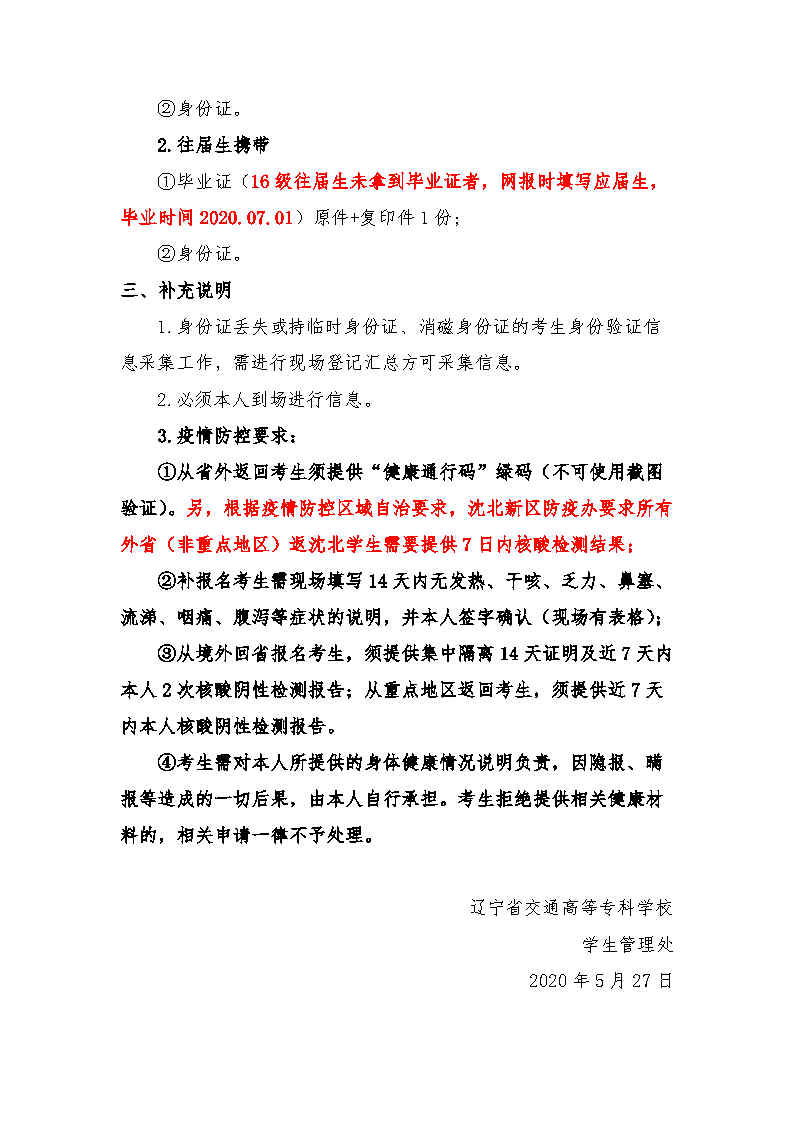 辽招考办【2020】15号-关于做好辽宁省2020年高职对口升学招生考试补报名工作的通知
