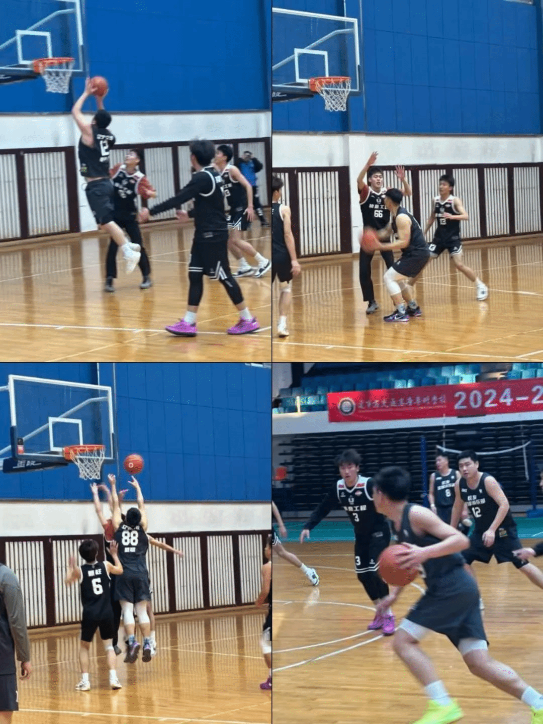 而另一场友谊赛则是由校友代表队对阵学生组冠军信息系代表队,这场比赛同样吸引了众多师生的目光。校友们凭借丰富的经验和默契的配合,在场上与学生队伍展开了激烈的对抗,双方队伍你来我往,比分交替上升,为现场观众奉献了一场视觉盛宴。