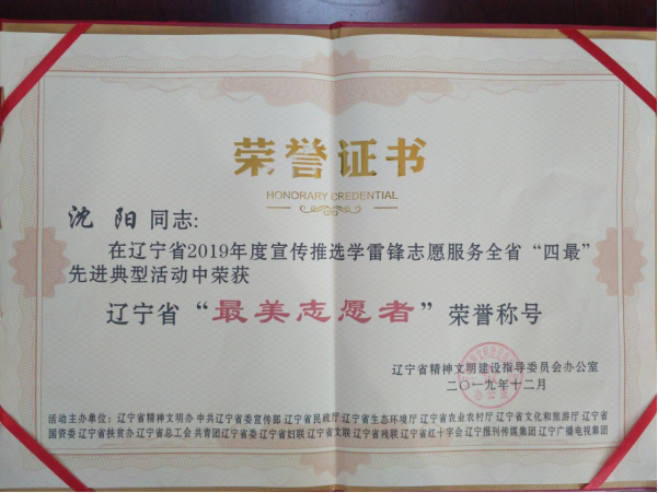 不仅如此,沈阳还经常帮助有困难的学生。2014年,在得知一名特困同学因病休学后,他第一时间组织捐款,为患病同学筹集善款近万元。